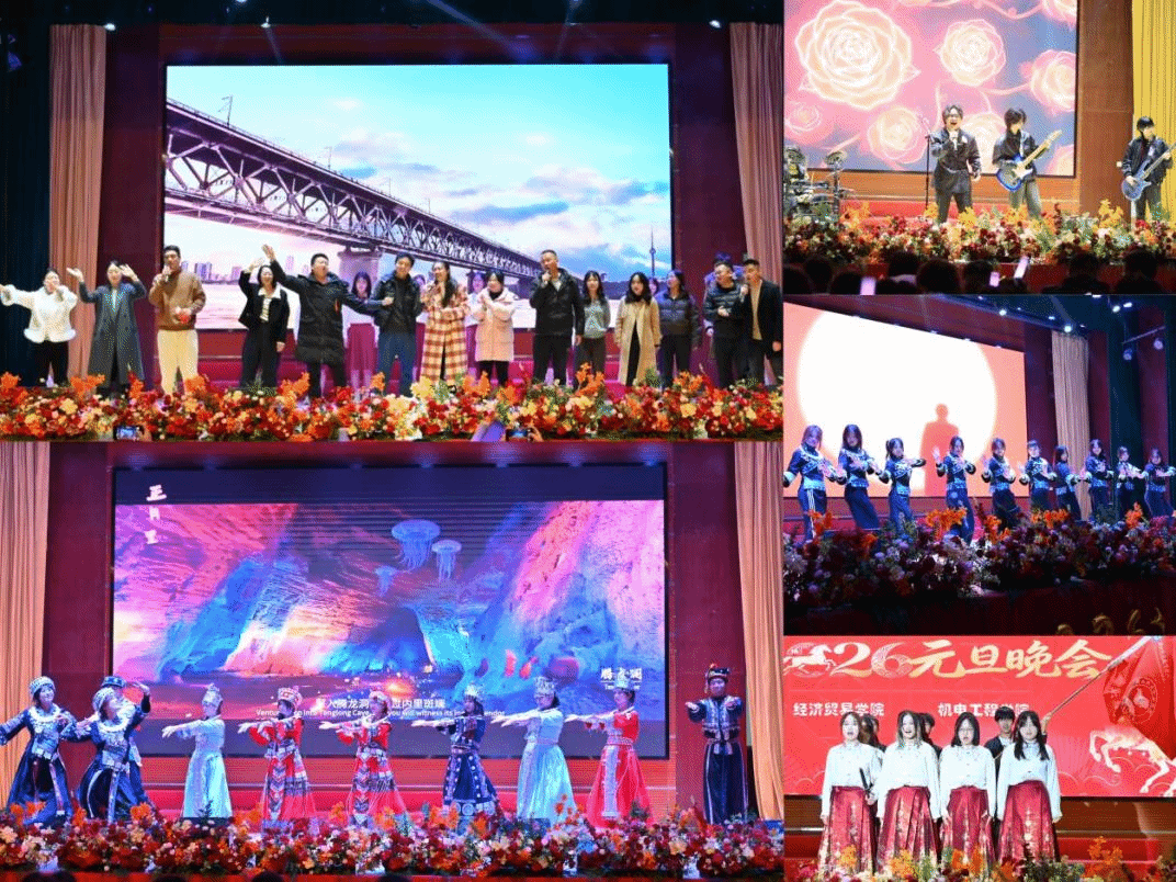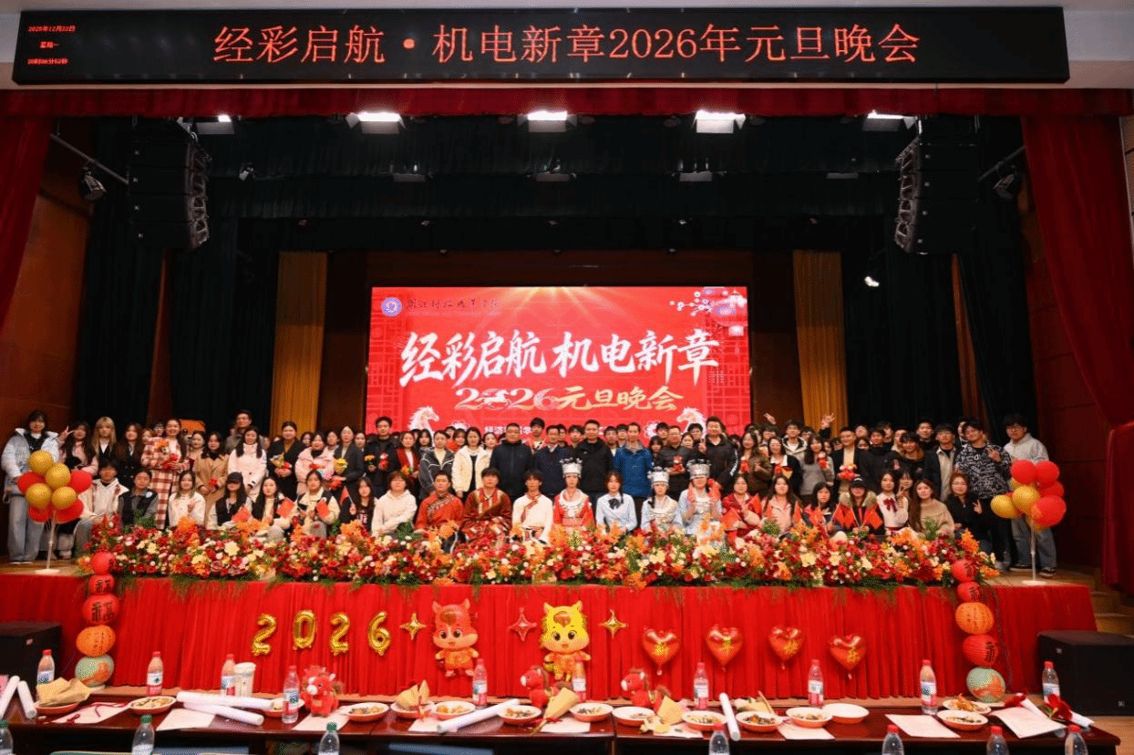 本网讯(通讯员 余捷 毛大名 梁璐茜/文 大学生记者:蔡迪嘉恒/图)星霜荏苒,温暖同行;岁序更替,华章日新。12月22日晚,经济贸易学院与机电工程学院联合举办“经彩启航 机电新章”2026年元旦晚会。学工部、校团委等部门负责人,两个学院的领导班子、教职工、辅导员与400余名学子欢聚一堂。