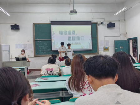 主题活动形式多样,围绕感恩主题,通过讲述国家资助政策、身边的励志故事、观看励志成才视频、感恩教育资助征文、受助学生发表感言等形式,引导学生规划自己的大学生涯,从小事做起、从点滴做起。鼓励同学们好好学习,争取学有所成、学有所用,厚植家国情怀。