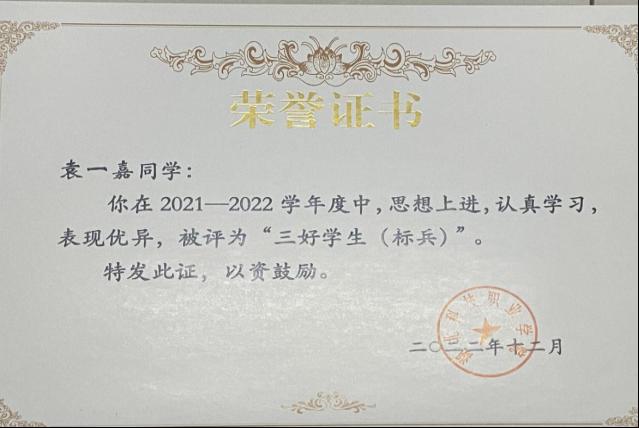 2022年获湖北科技职业学院“三好学生(标兵)”荣誉称号
