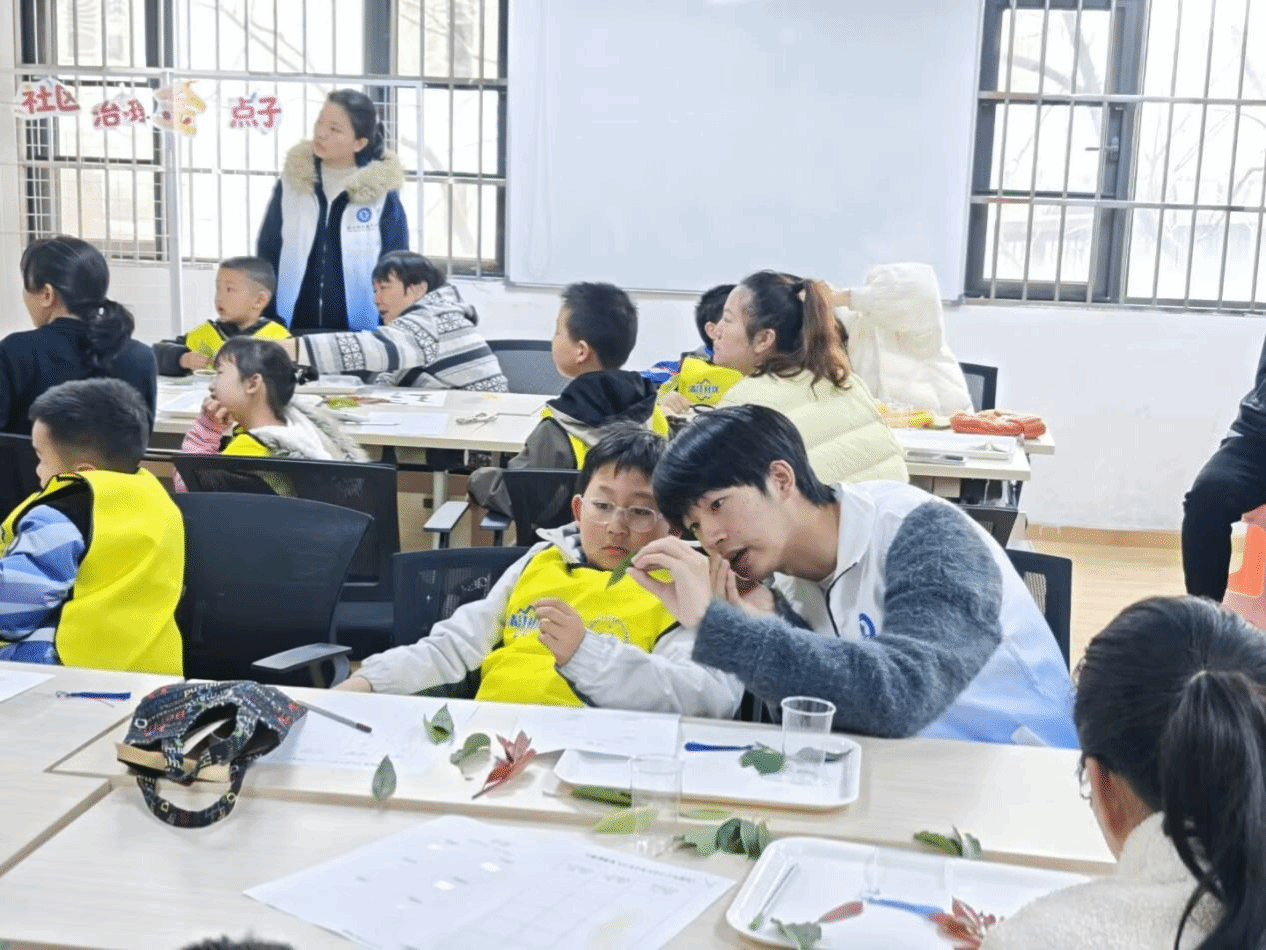 3月22日恰逢春分节气,“春日魔法师·树叶的奥秘”春分自然科普活动如期举行。经济贸易学院志愿者们积极协助工作人员开展科普讲解,耐心引导孩子们观察叶片形态、动手提取叶绿素、制作创意树叶书签,让孩子们在春分时节的盎然生机中,在轻松有趣的氛围里深切感受自然魅力。