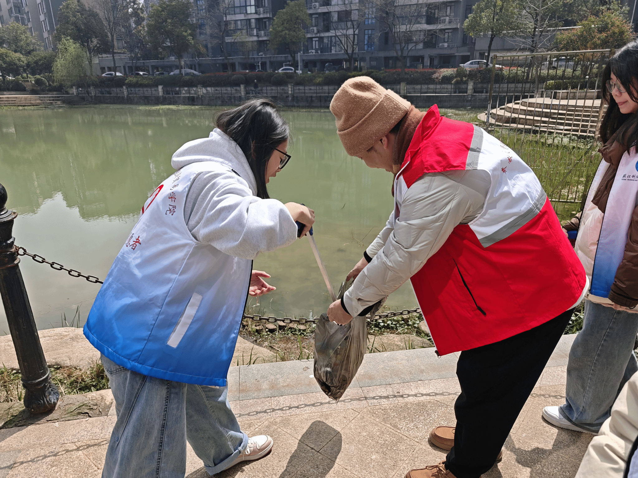3月21日,一场以“世界水日·护绿护湖行动”为主题的实践活动顺利开展。经济贸易学院志愿者们全力协助社区,带领亲子家庭走进湖畔,开展湖畔清洁、绿植养护等志愿服务。大家分工协作、认真负责,仔细清理湖畔垃圾,悉心呵护周边绿植,以实际行动践行节水护水的绿色环保理念。